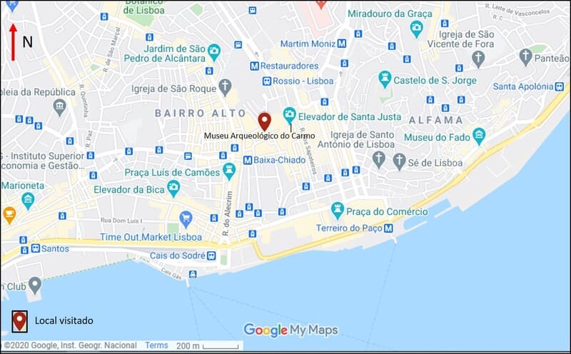 Mapa de localização do Museu Arquelógico do Carmo