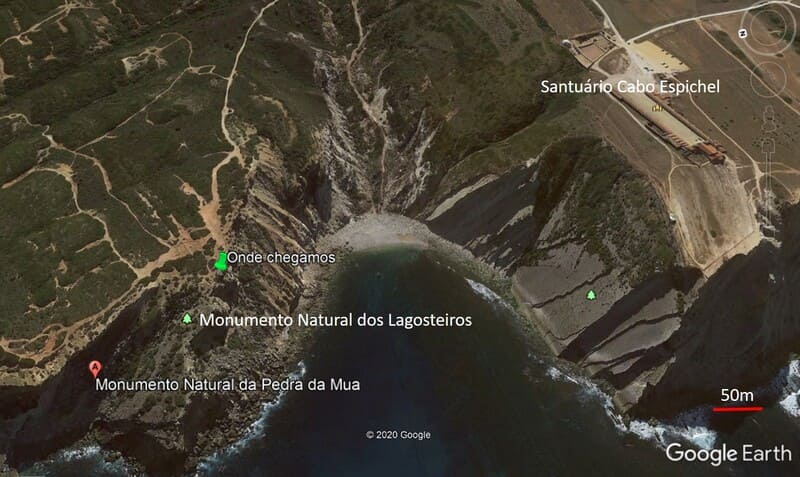 Ao longo de um cenário belo e natural caminhamos cerca de 25 minutos do Santuário do Cabo Espichel até aonde foi possível chegar com segurança.