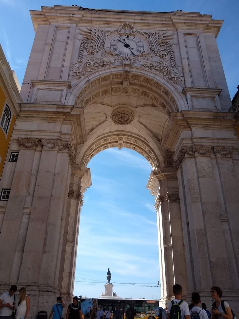 Ali mesmo ao lado está a lindíssima praça do Comércio. É impossível não notar os símbolos do arco do triunfo. Estes, estão ligados a ideia do império espiritual, da maçonaria em Portugal e também uma referência a reconstrução de Lisboa após o terramoto de 1735 na figura do Marquês de Pombal. Este arco foi construido no ano de 1873.