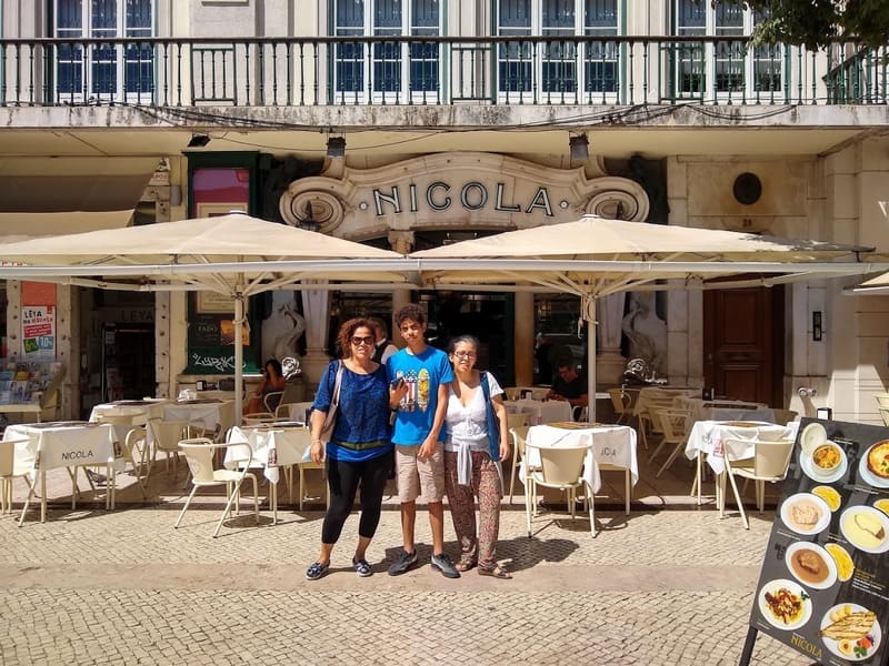 No fim da rua Augusta, está a praça do Rossio. Esta, estava lá com as suas belas fontes ornamentais com figuras mitológicas. Passamos para tomar um café no Café Nicola, local de preferência do poeta Bocage do século XVIII e porque não fotografar o seu memorial.