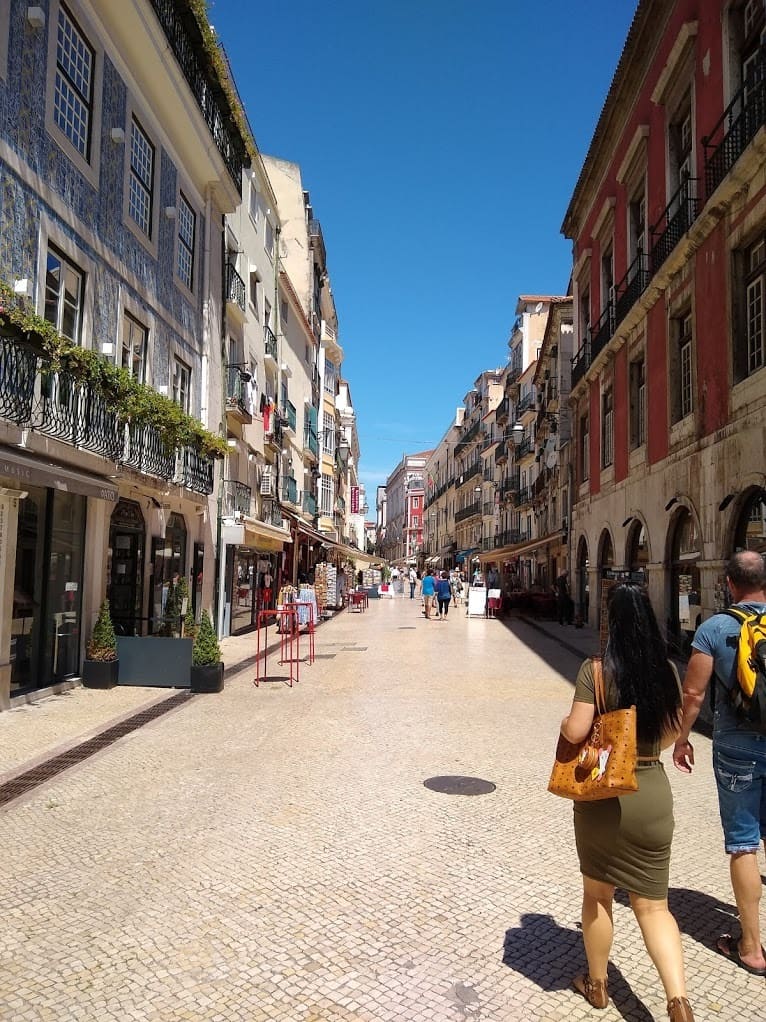 Caminhamos ao longo da rua Augusta uma das mais emblemáticas de Lisboa no sentido do Rossio. Para quem caminha por essa rua, o olhar também pelas suas ruas transversais é tentador. São ruas que contam sempre uma história, um lugar de passagem de encontro de pessoas, de oportunidades de fotos únicas, de compras, de uma gelataria e ainda de uma vista do elevador de Santa Justa e muito mais.